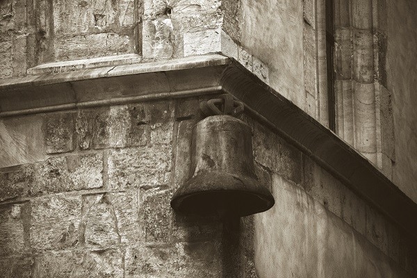 znamení – zvonění zvonu špitálního kostela Panny Marie před Týnem (kostel se nachází napravo od domu).
